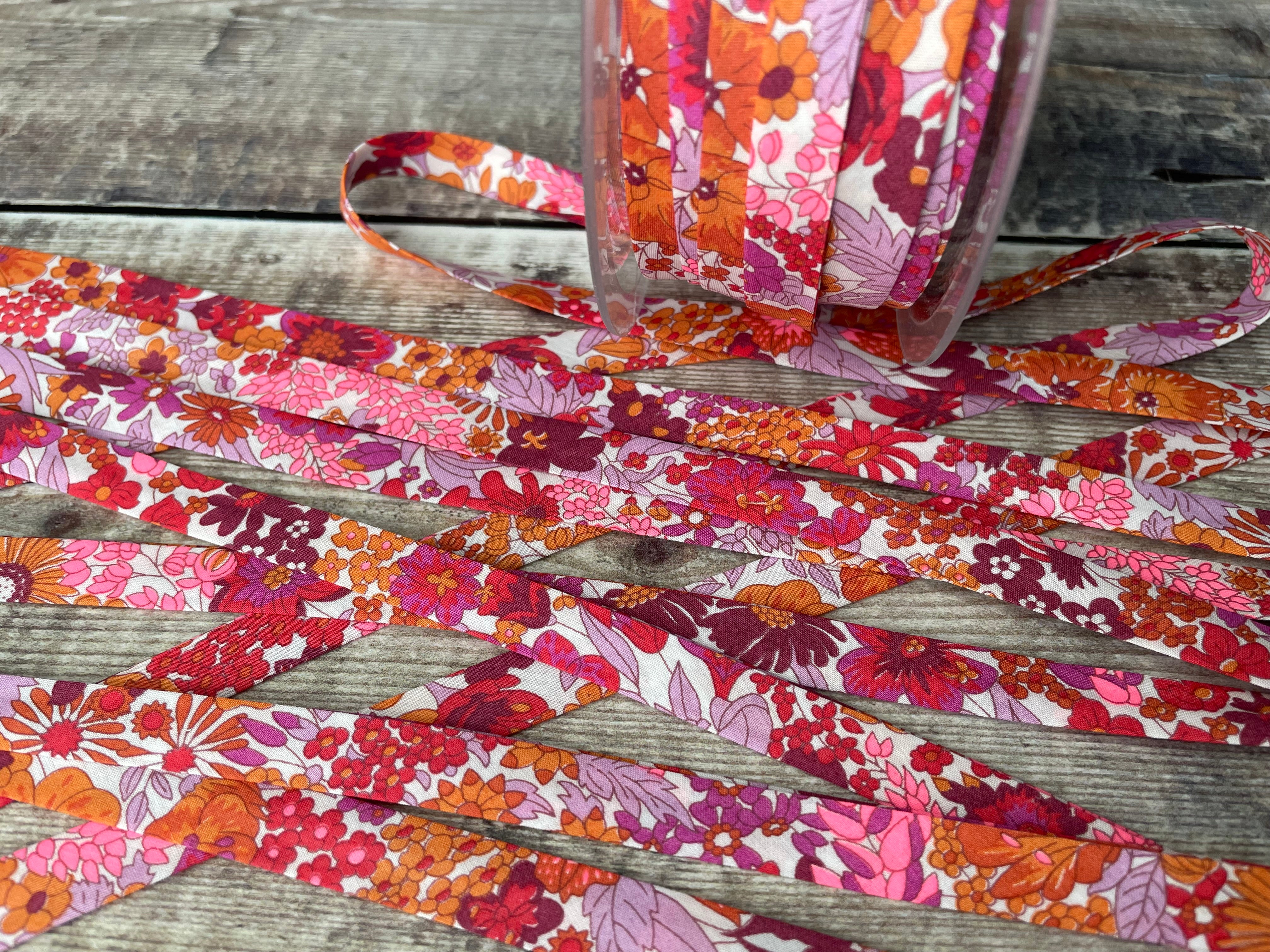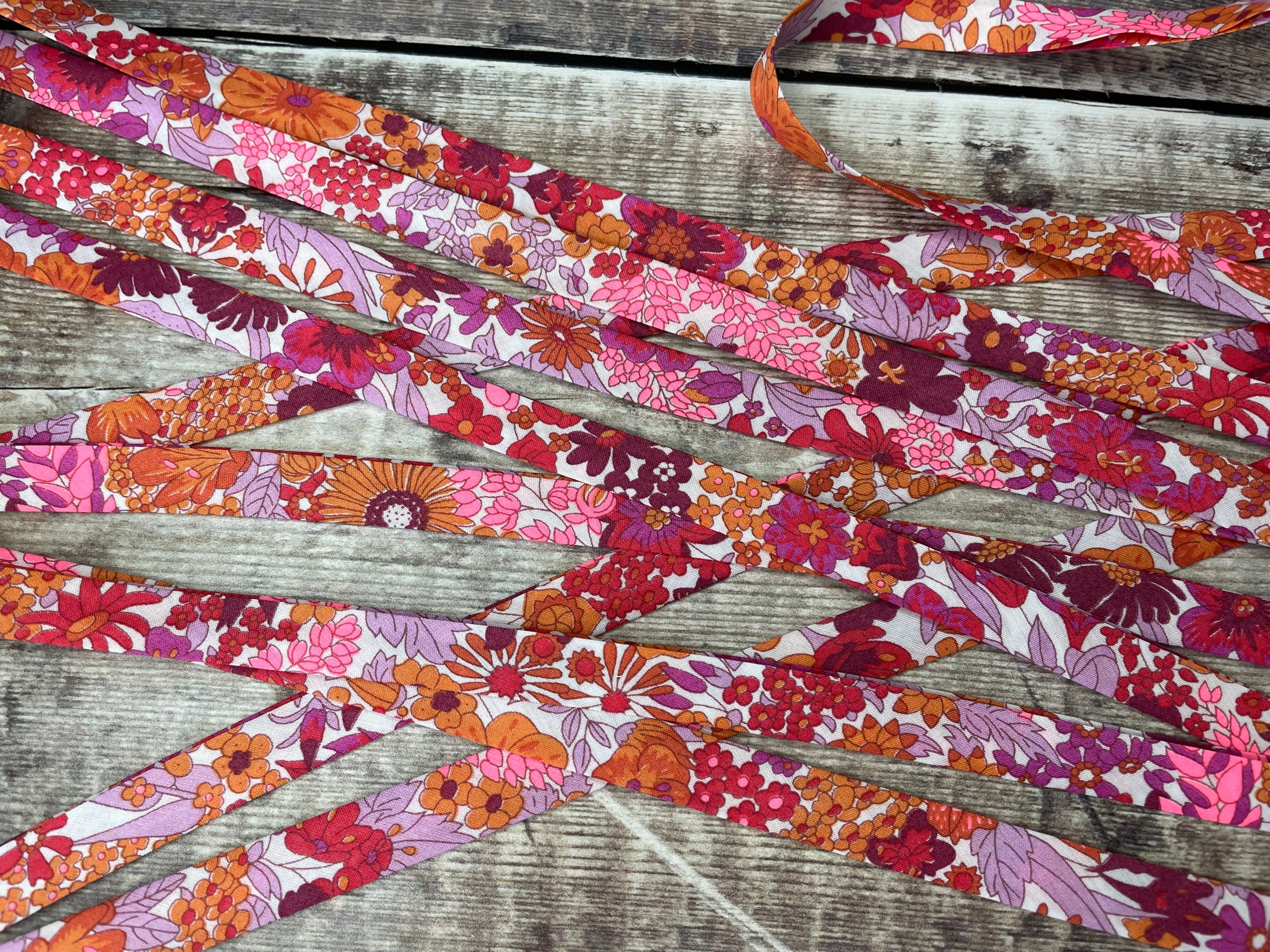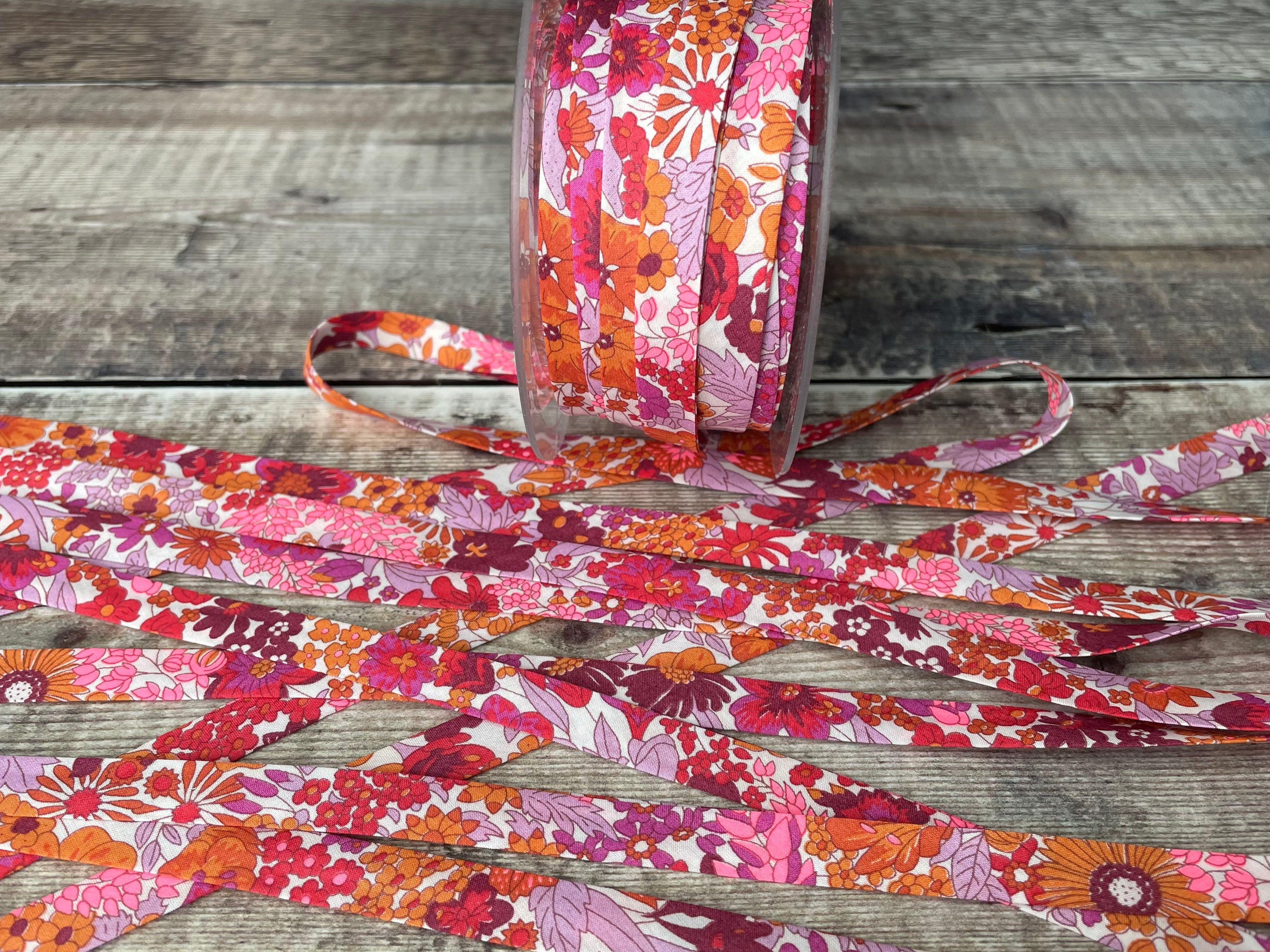 Liberty fabric Margaret Annie Hibiscus Fluo bias binding, 10mm