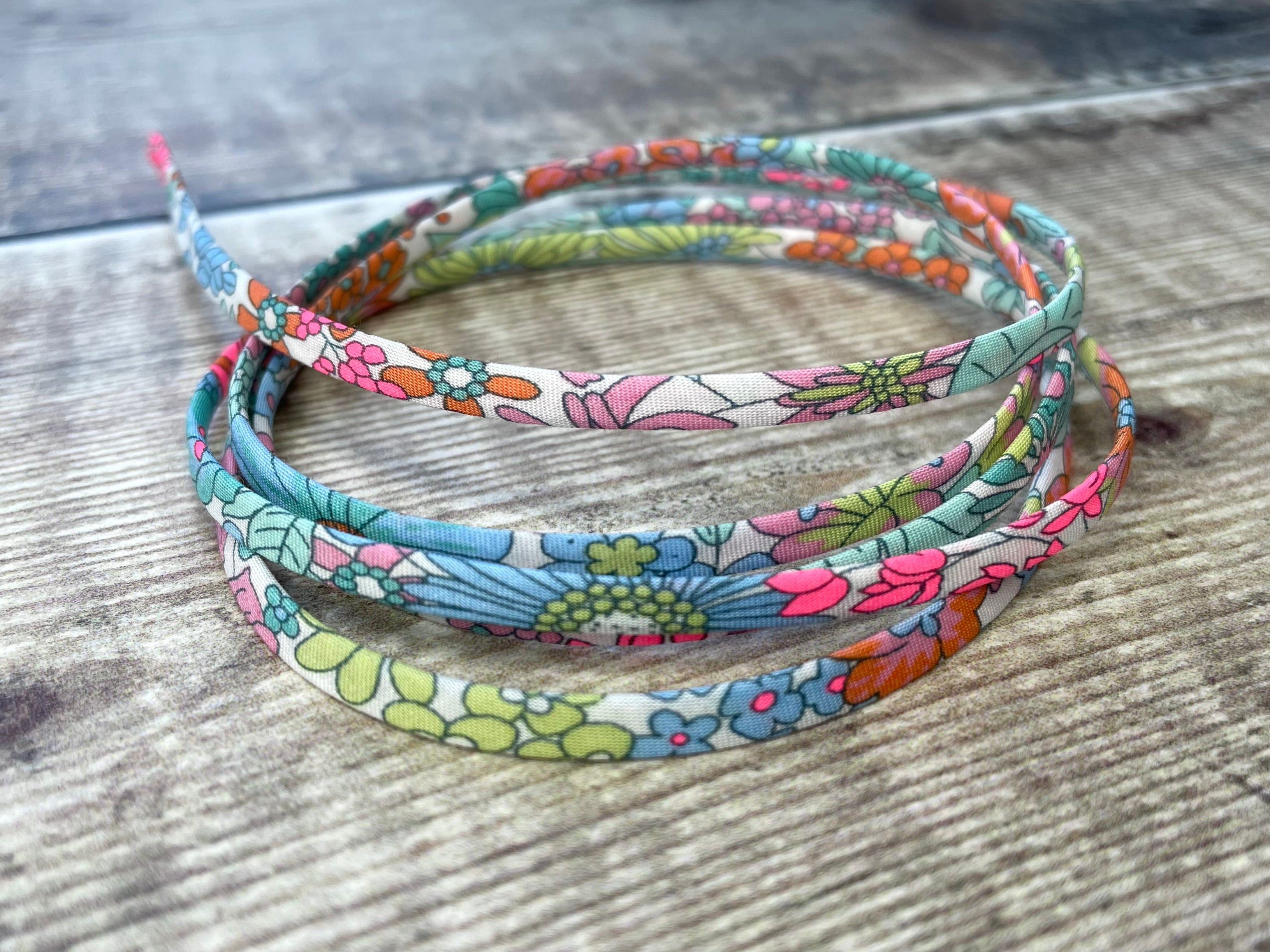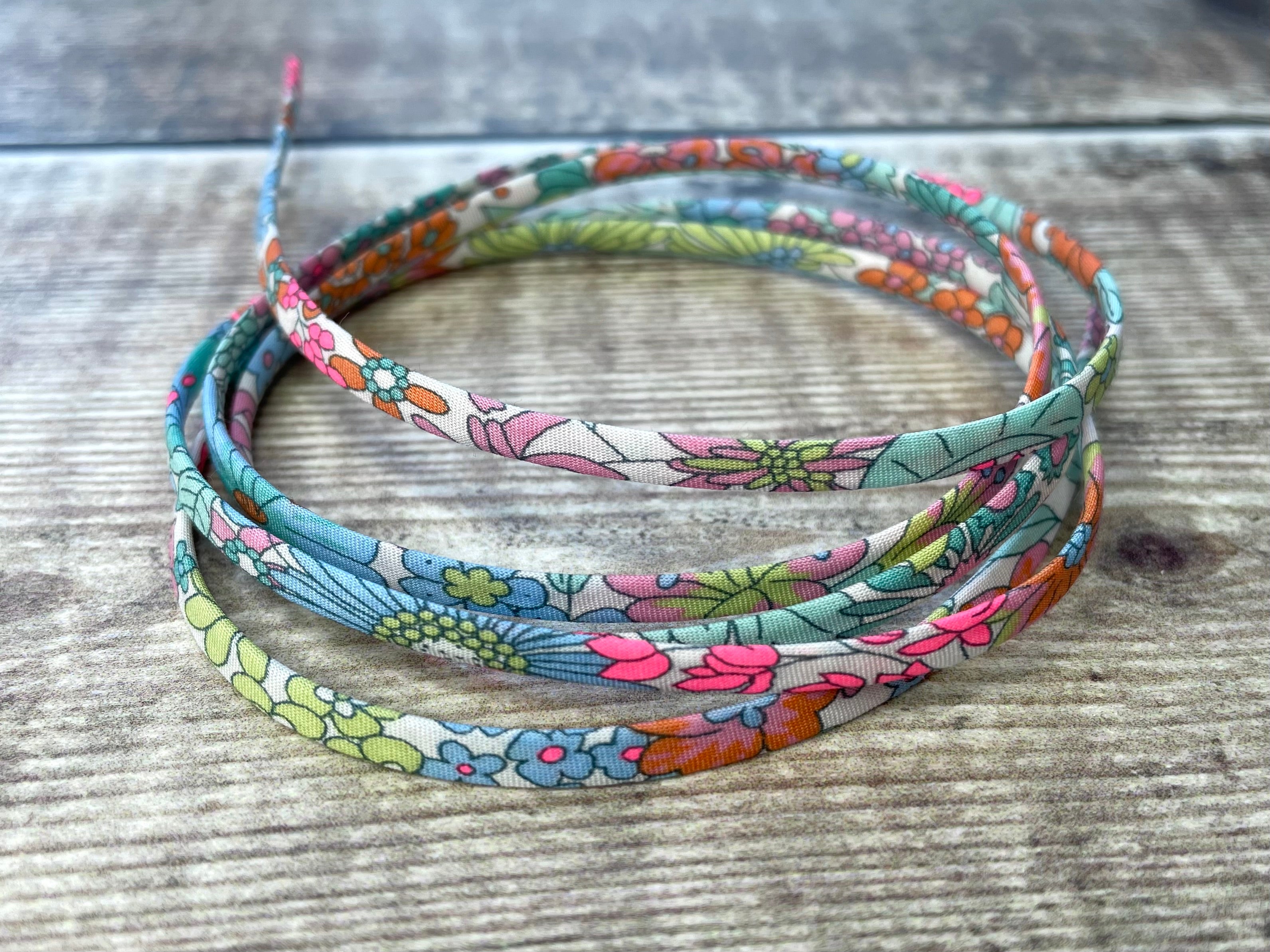 Liberty spaghetti cords can be used in many creative ways: bracelets, anklets, necklaces, hair bows, decorating wedding favours or invitations, card making, embellishing clothing, bags or even worn as shoelaces..